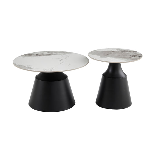 Klub sto 6052 set Bela keramička ploča/Crne metalne noge fi 70+fi 50