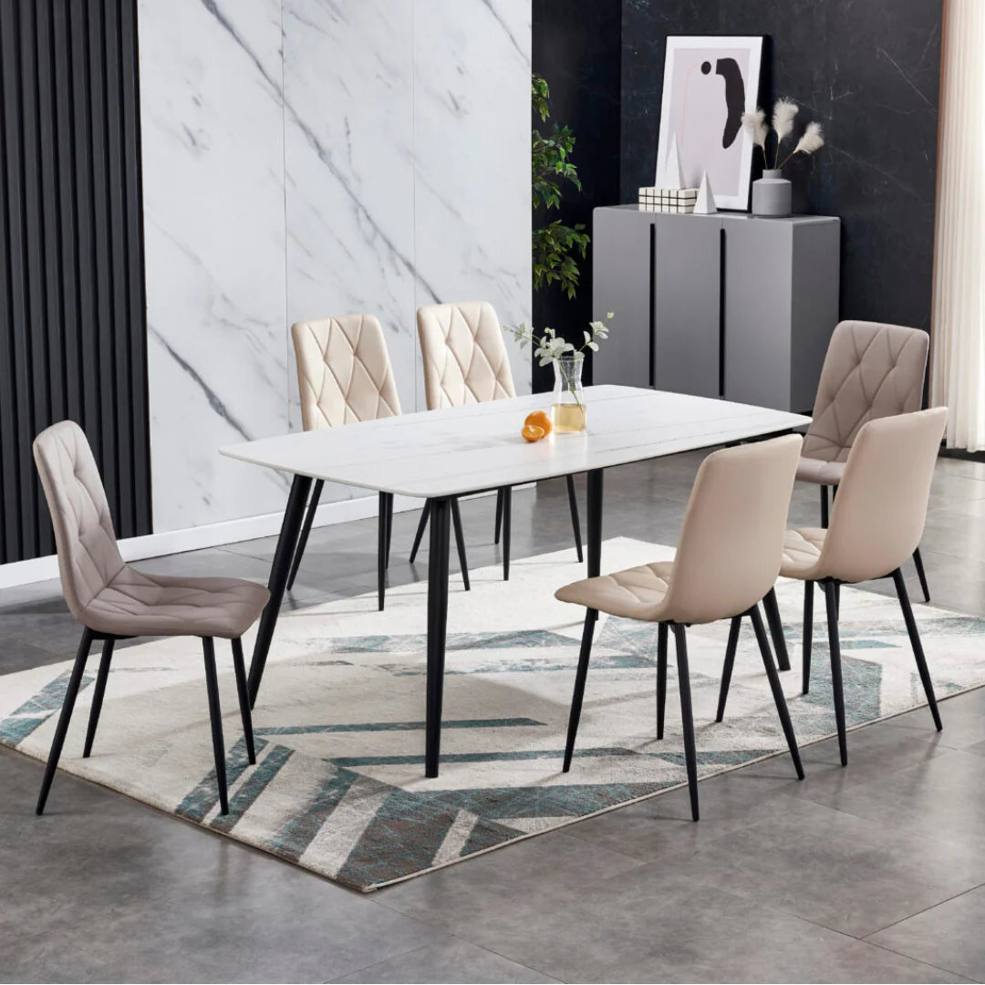 Trpezarijski sto 2307 Bela keramicka ploca/Metalne crne noge 1400x800x750 mm
