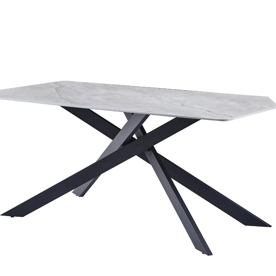 Trpezarijski sto 2339 Siva keramicka ploca, sjaj/Metalne crne noge 1600x900x750