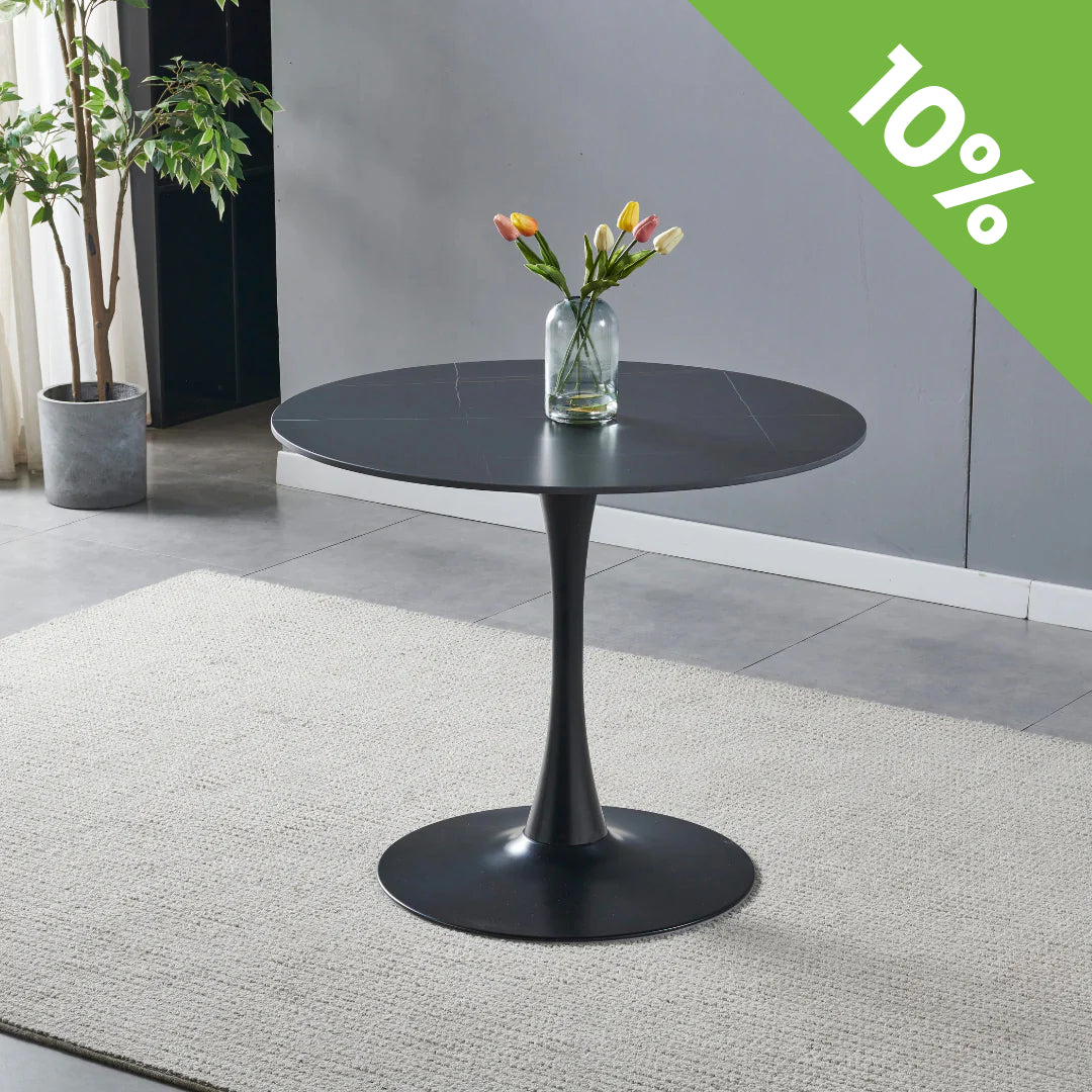 Trpezarijski sto 6022 Crna keramicka ploca/Metalne bele noge fi 900x750 mm