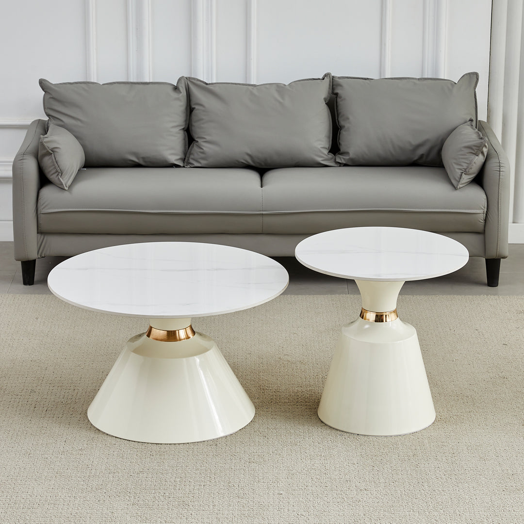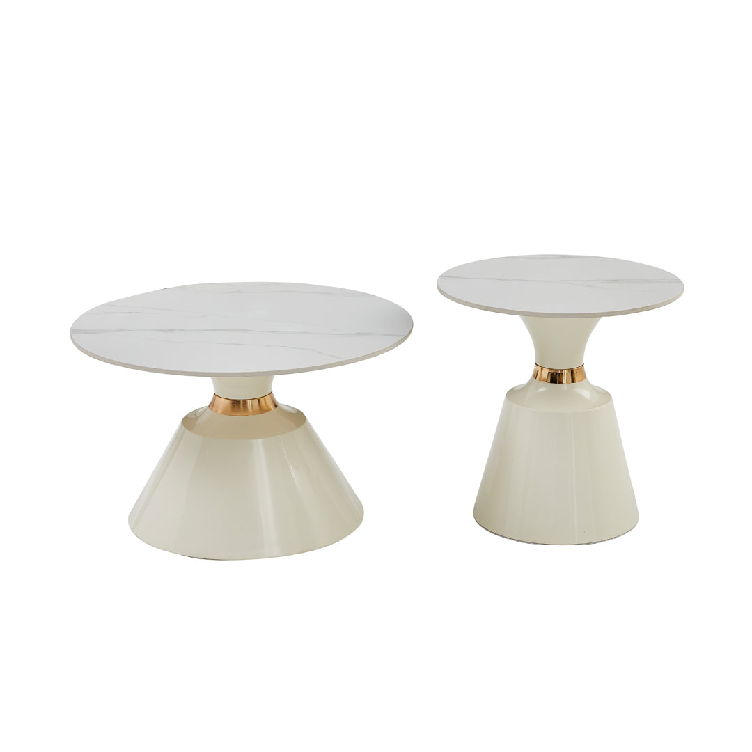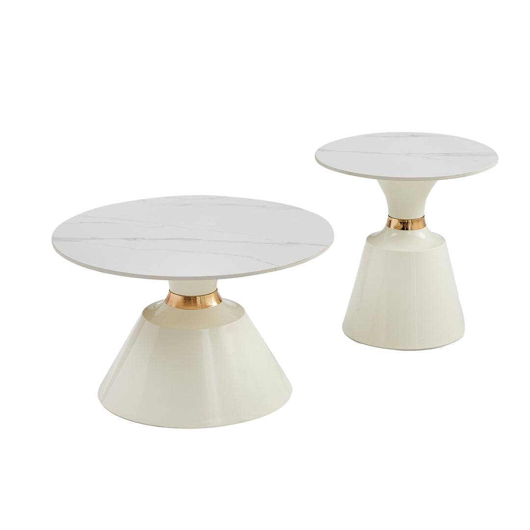 Klub sto 6164 set Bela keramička ploča/Bele metalne noge fi 70+fi 50